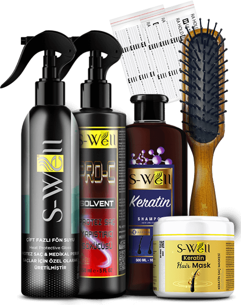 Protez saç bakım setindeki ürünler ile protez saç bakımlarınızı eviniz de kendiniz de yapabilirsiniz.
