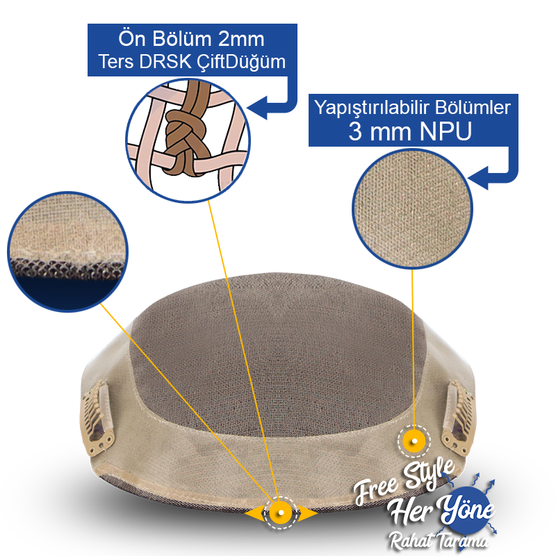 %100 Gerçek insan saçlarından üretilmiş Antalya Modeli Protez Saçın orta bölümü fine mono dayanıklı tül olduğundan, hava ve su geçirgenliğine sahiptir. Bu sayede kafa deriniz oksijen alır ve derinizin su ile teması sağlanır. Ön kısımdaki 2 mm lik bölüm ters düğümdür. Bu bölümde saçlar yukarı dönüktür.Bu sayede Saç dipleri ve düğüm yerleri, alın bölgenize %100 Doğal bir görünüm kazandırır. Geri kalan bölümde DRSK çift düğüm kullanılmıştır. 360 derece pu. bantlama bölümü sayesinde her açıdan mükemmel tutuş gücü sağlar. Klipsleri sayesinde, tepelik olarak da kullanılabilir. Arka ve yan bölümlerdek poly, kullanıcının ölçülerine göre kesilebilir.50-55 cm saç uzunluğuna sahip Free Style Antalya Modeli Kadın Protez Saç Modeli ipeksi yapısı ve yönsüz oluşu sayesinde her modele rahatlıklar girer, kolay taranır. İster arkaya tarayın ister yanlara, her durumda da mükemmel sonuçlar alırsınız. Dileğinize göre sprey, wax, saç jölesi kullanabilirsiniz. Daha çok kendi bakımını kendisi yapmak isteyenler için tercih sebebidir.